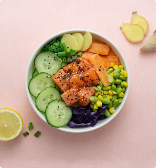 Picture this: a vibrant and colorful salmon poke bowl, brimming with cubes of fresh, buttery fish, crunchy veggies, and a zingy sesame dressing.