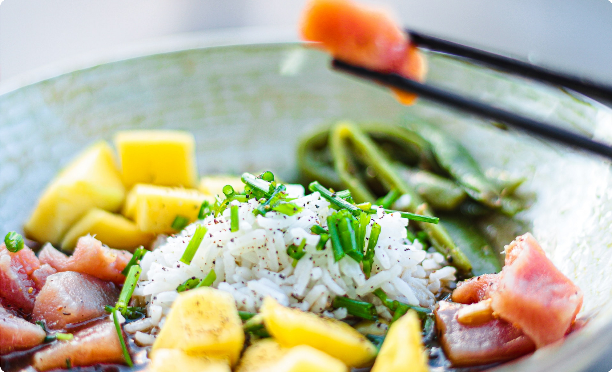 - Divide the cooled rice among 4 bowls. Top each bowl with the salmon mixture, diced mango, and any additional toppings you like.
